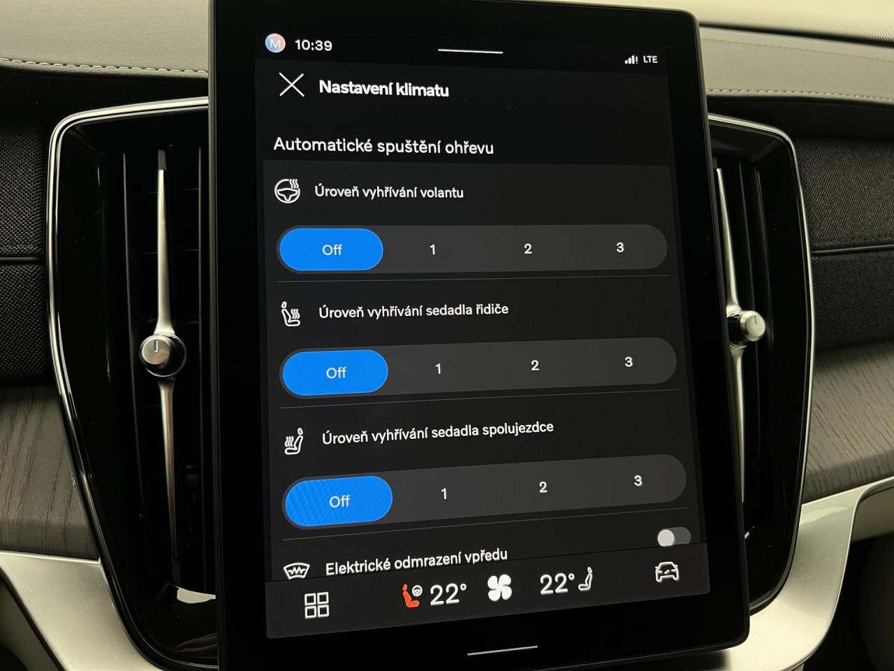 - Vyhřívané čelní sklo